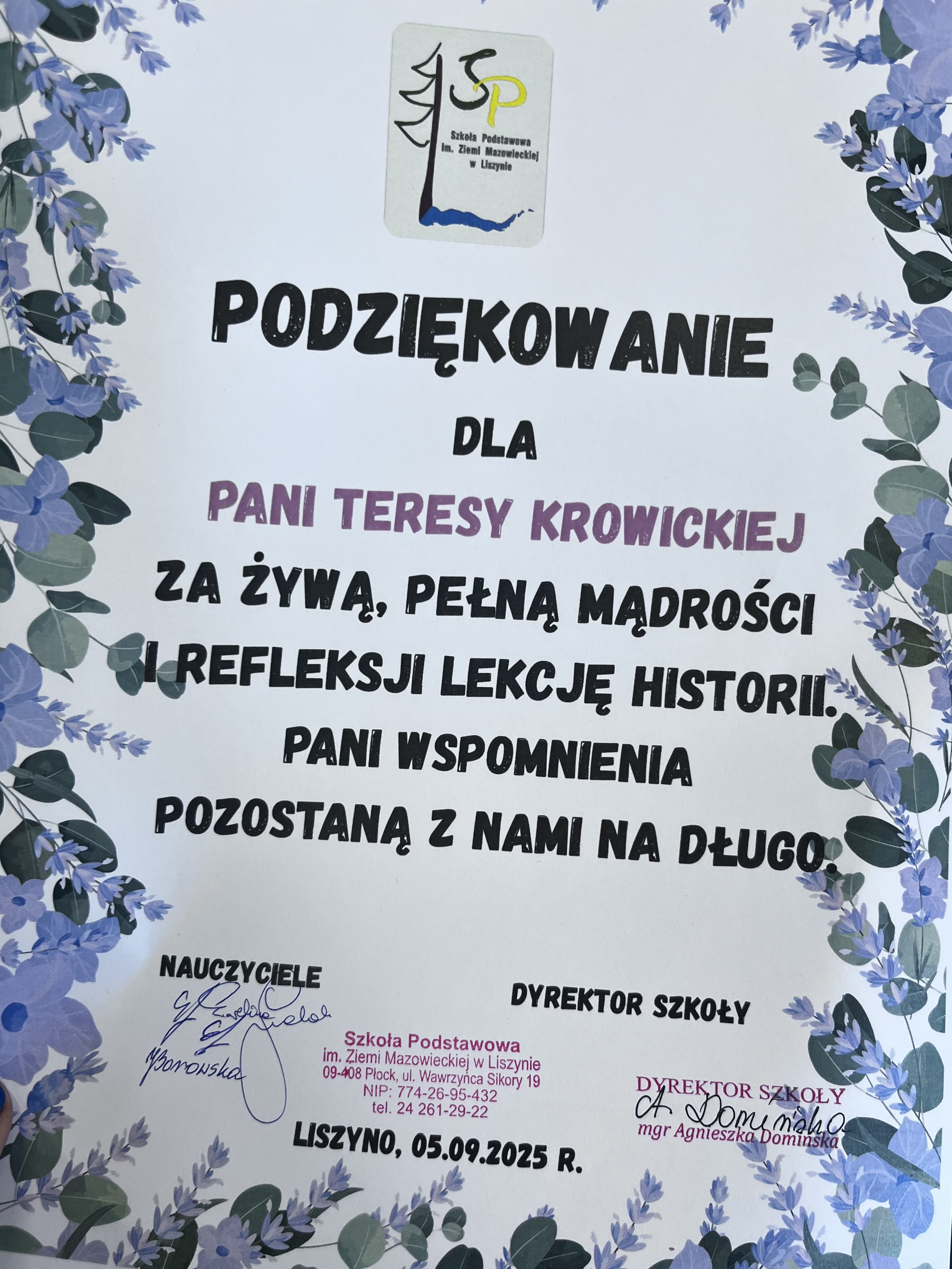 Teresa Krowicka - płocczanka urodzona w 1937 roku - jako dziecko była więźniem niemieckiego obozu koncentracyjnego KL Soldau (Działdowo). Cale jej życie to troska  o zachowanie pamięci o tysiącach ofiar zagłady tego obozu, w tym biskupów męczenników płockich: bł. abp. Antoniego J. Nowowiejskiego i bł. bp. Leona Wetmańskiego.
