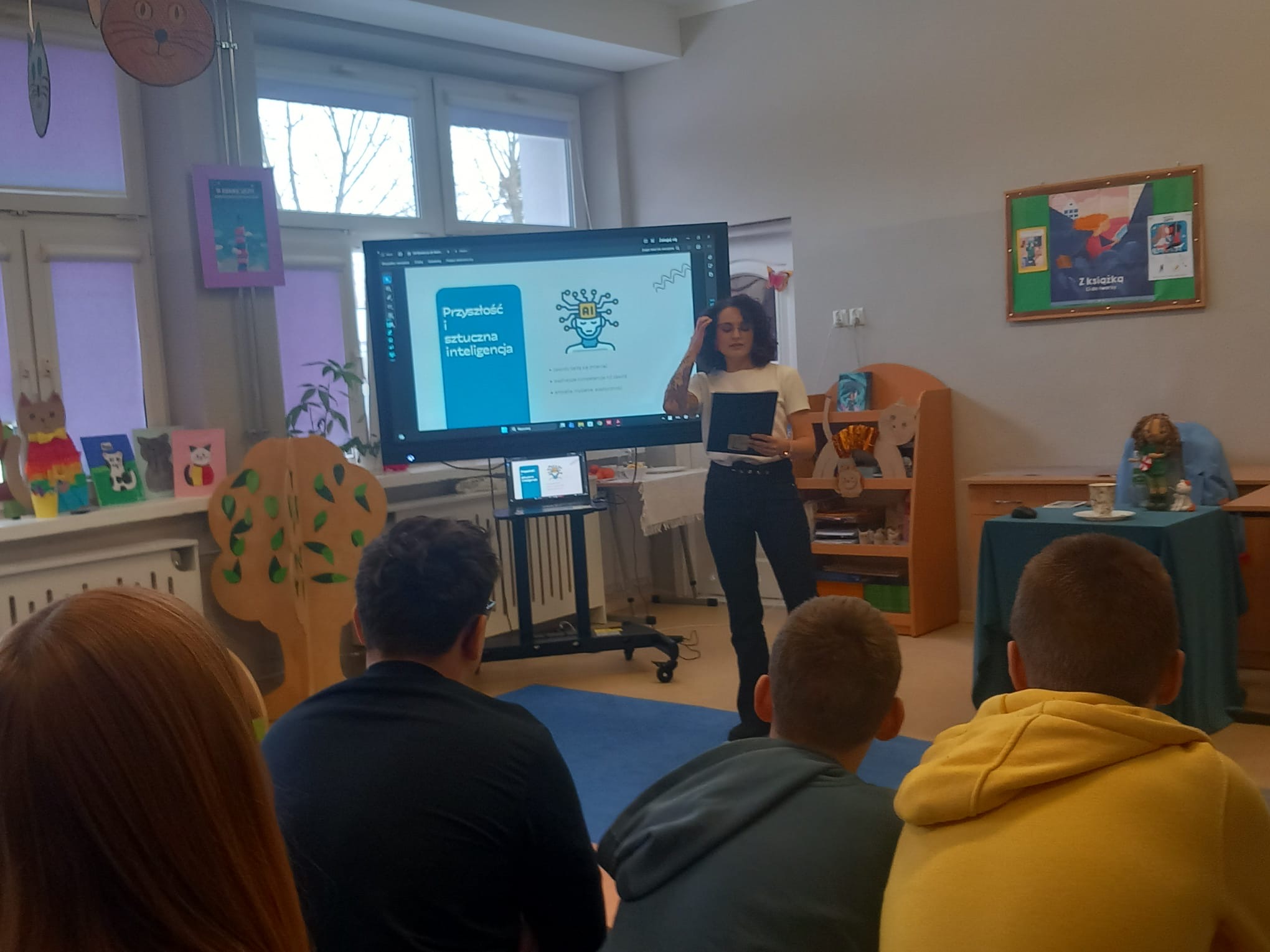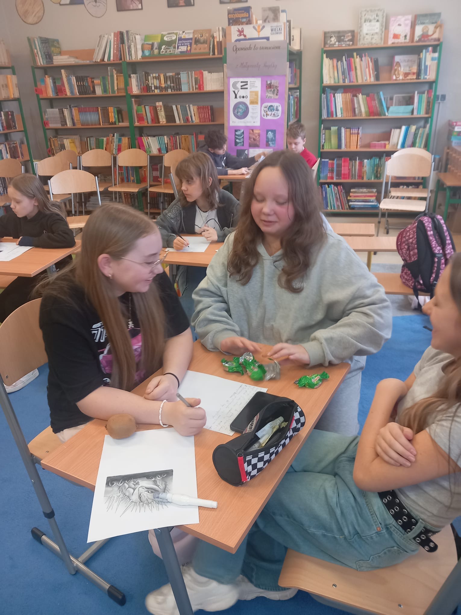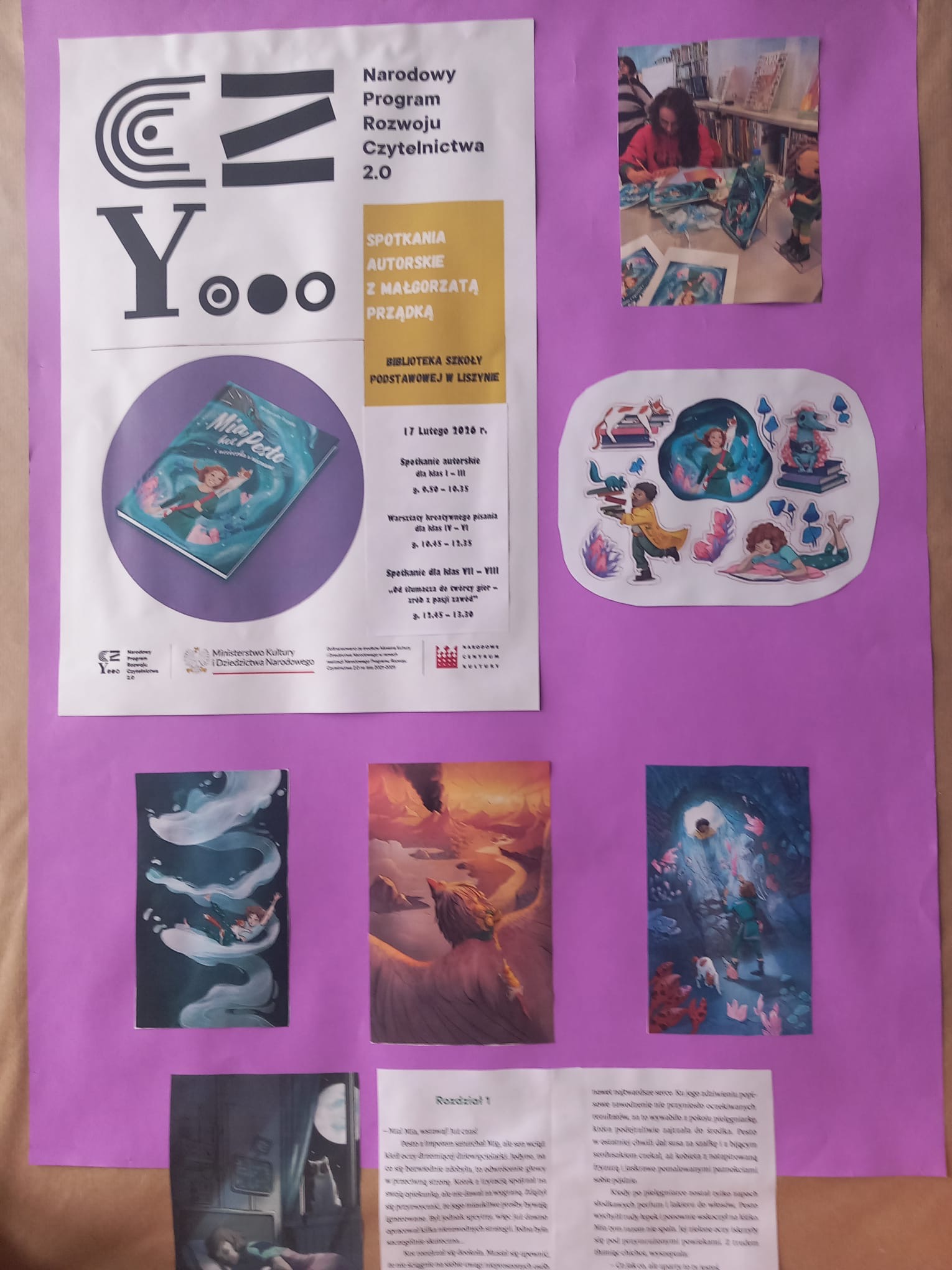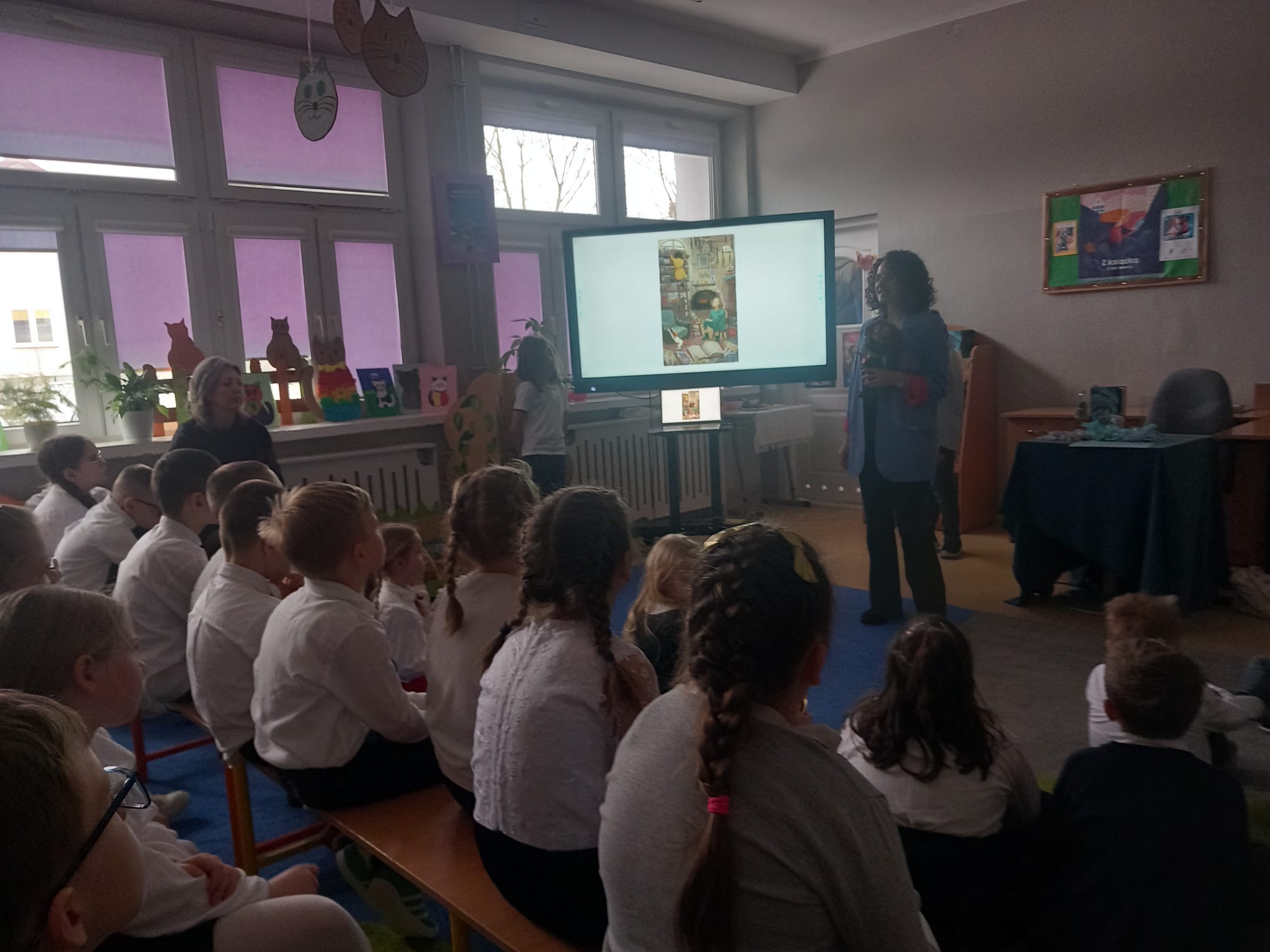 Koty opowiadają swoją historię nie słowami, lecz spojrzeniem, ciszą i miękkimi krokami. Razem z Małgorzata Prządką - autorką książki „Mia, kot Pesto i ucieczka w nieznane” - snuliśmy razem z nami kocie opowieści. Młodzi twórcy z klas 4 - 6 wzięli udział w warsztatach - co z klas 7 - 8 dostali słowa wsparcia w poszukiwaniu swoje drogi.